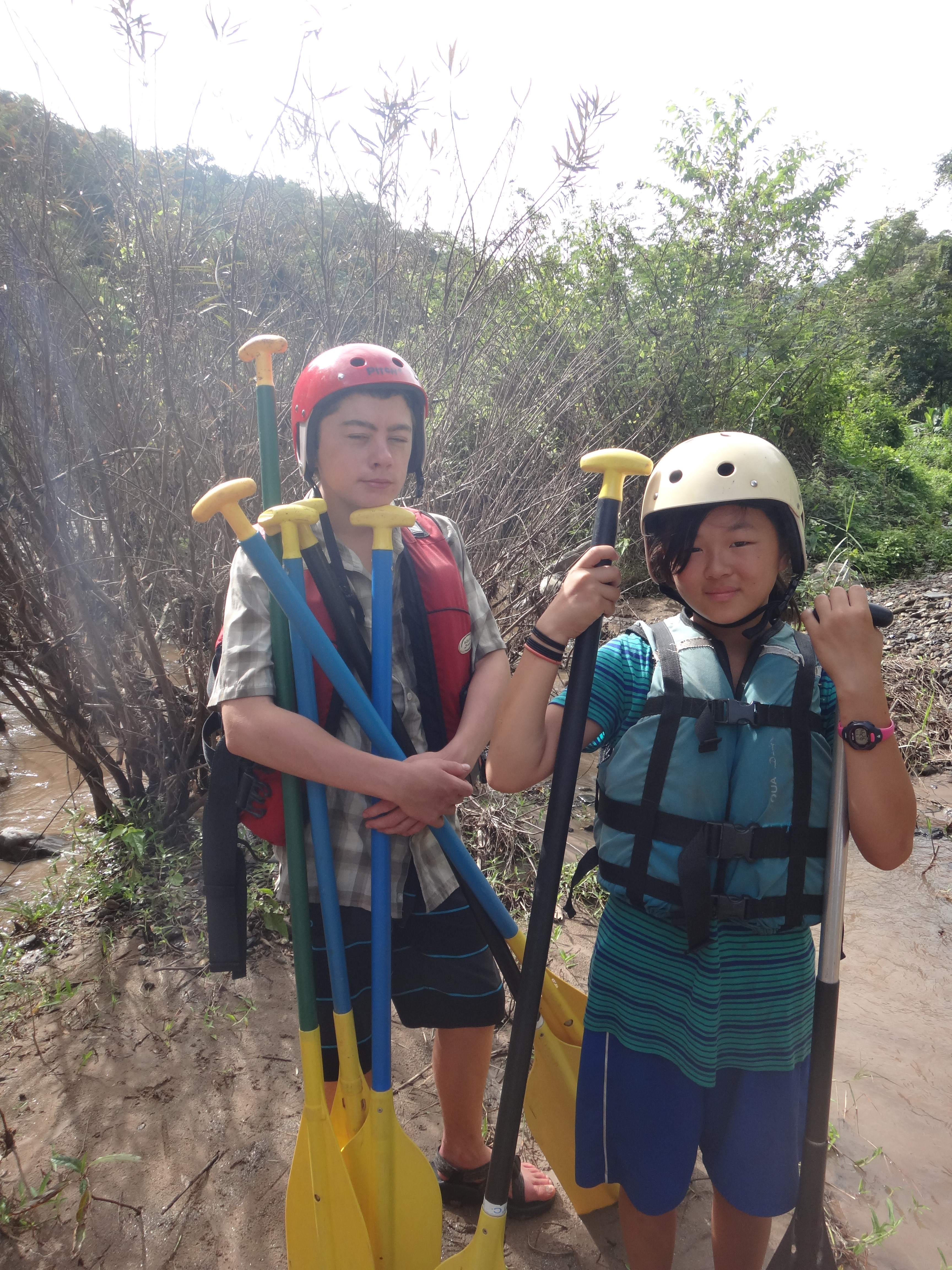 We spent 2 days on the Pai River. Fun was had on Class 3 and 4 rapids. The guides were funny and we got to spend one night a Jungle Camp. There the wise “The Boy” challenged us with puzzles. We could only solve two of them. No one from the Maurer’s got knocked off although the boat did almost flip once. The hot springs and rock slide along the way were added surprises.