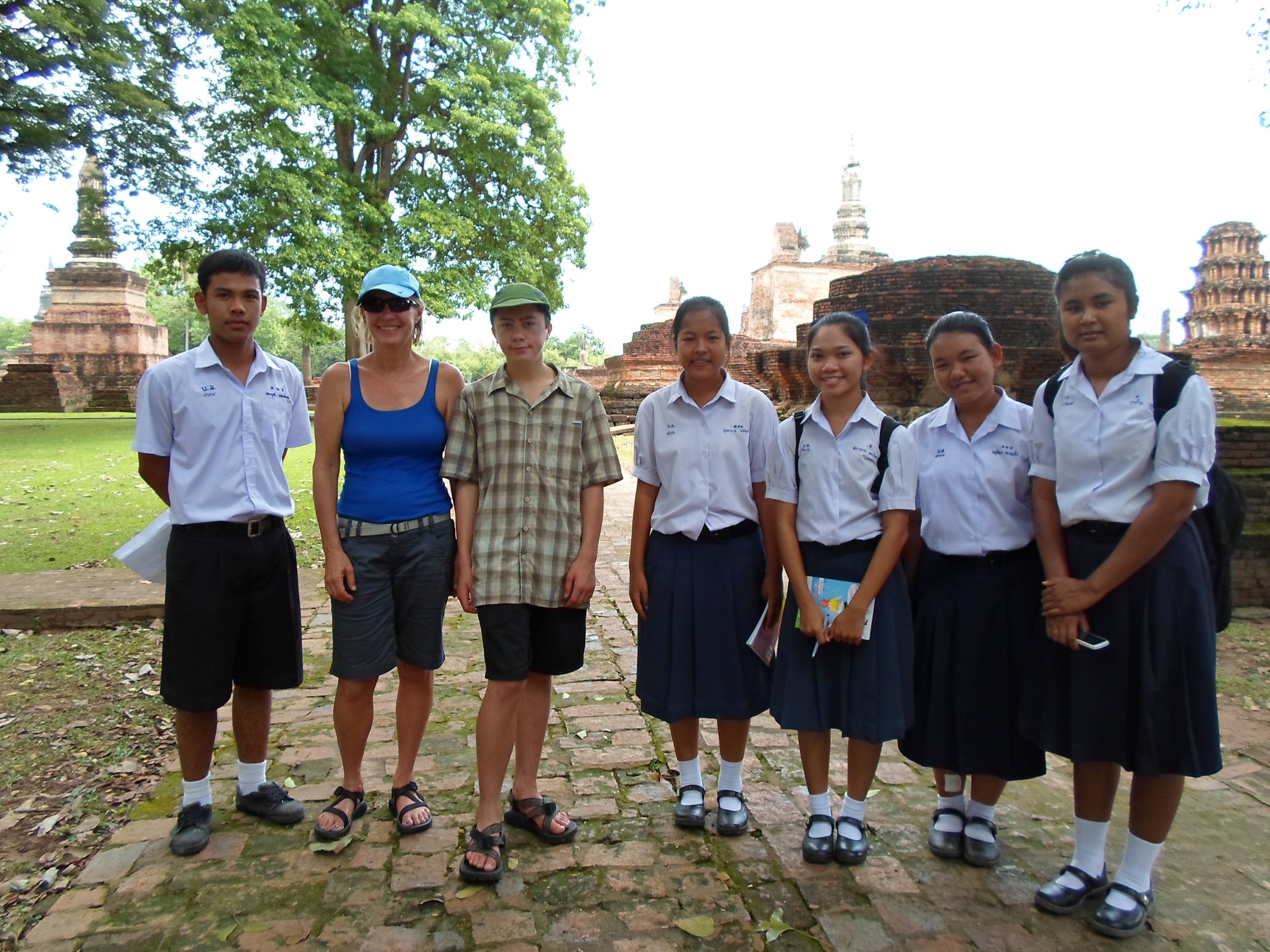 We spent a day riding bikes at the Sukhothai ruins. The cab driver from the train station took us to the wrong hotel, out in the middle of nowhere. We were beginning to think it was not worth the extra travel to get here. Once we were at the ruins we changed our minds. Very few tourists had come to visit the park. Groups of school kids were practicing their English. A fun part of the day was sitting with an old woman under a tree and having a Coke. Seeing Khmer ruins in a place like this was amazing.