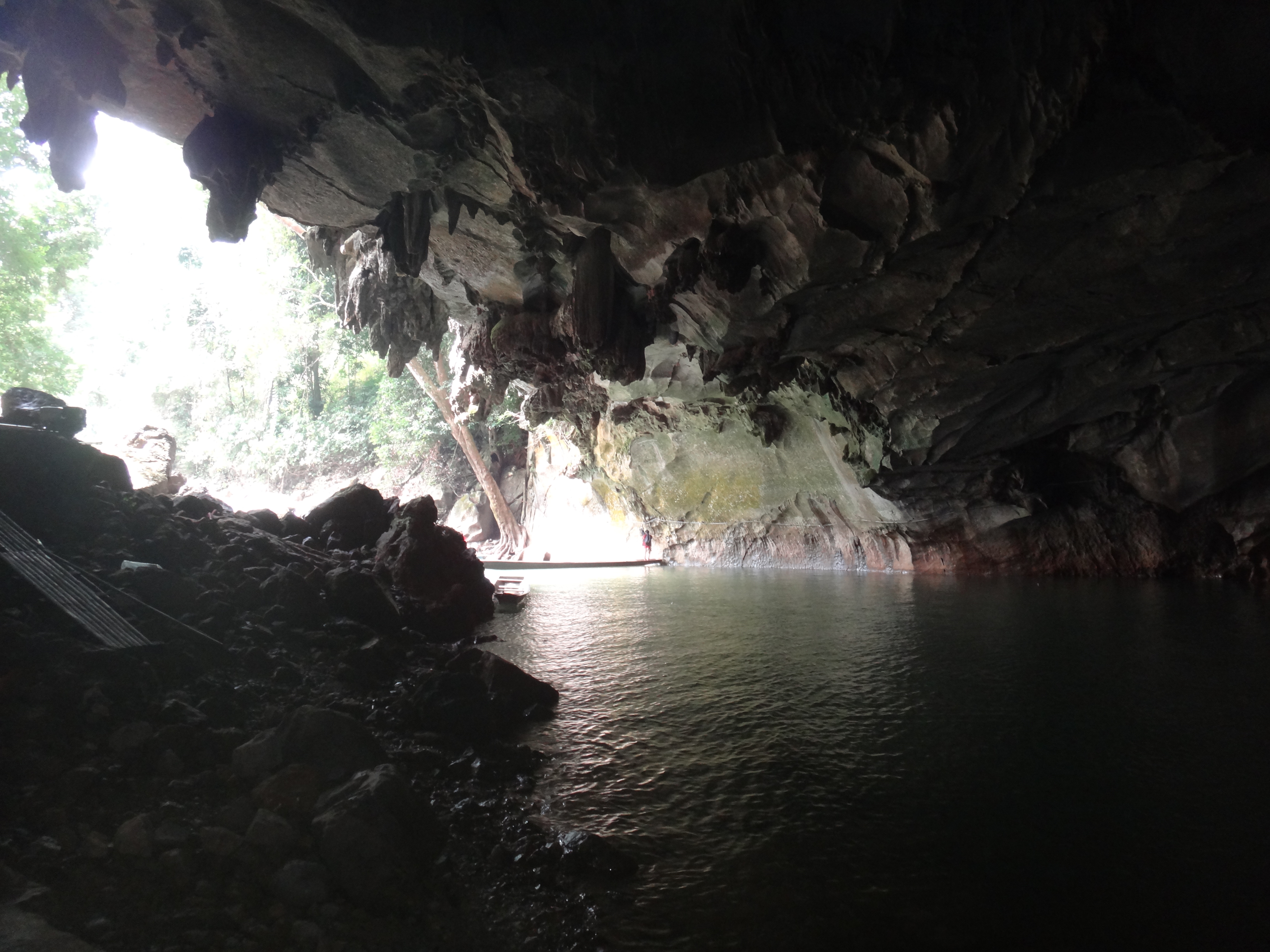 We went to see the Konglor Cave in Laos. It was pitch black in there, so we had to rent these super powerful flashlights (they were kinda like the headlamps used for mining). You have to take a boat through the cave because it is full of water from the river that runs inside and outside of it. It was so beautiful and the rocks are very impressive.